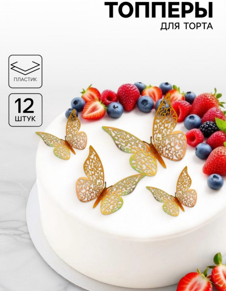 Страна Карнавалия Топперы для торта «Бабочки»В данный момент этот товар отсутствует в продаже. Возможно, у нас найдется аналогичный или похожий товар здесь. Набор для украшения «Бабочки» подойдёт для декорирования интерьерных композиций, букетов или тортов. Такие украшения можно разместить на стенах, полках или использоваться в качестве центрального элемента стола. Декор легко крепится к любой чистой сухой и гладкой поверхности. Например, к окрашенной или оклеенной обоями стене, стеклу, керамической плитке, металлу, пластику. |