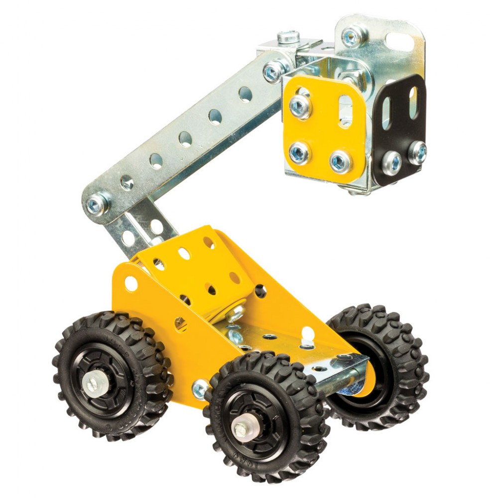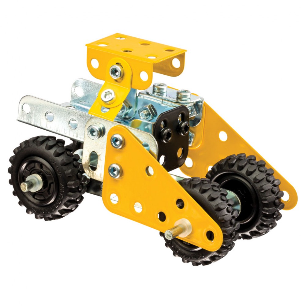 Spin Master Конструктор 5-в-1 «Строительная техника»В данный момент этот товар отсутствует в продаже. Возможно, у нас найдется аналогичный или похожий товар здесь. Серия: Meccano Из 95 прочных деталей вы сможете собрать одну из 5 моделей строительной техники, от бульдозера до самосвала. Основные детали конструктора - металлические пластины с отверстиями, которые соединяются между собой при помощи болтов, но также в набор входят вполне функциональные вращающиеся колеса. К конструктору прилагаются инструменты, которые понадобятся при сборке. |