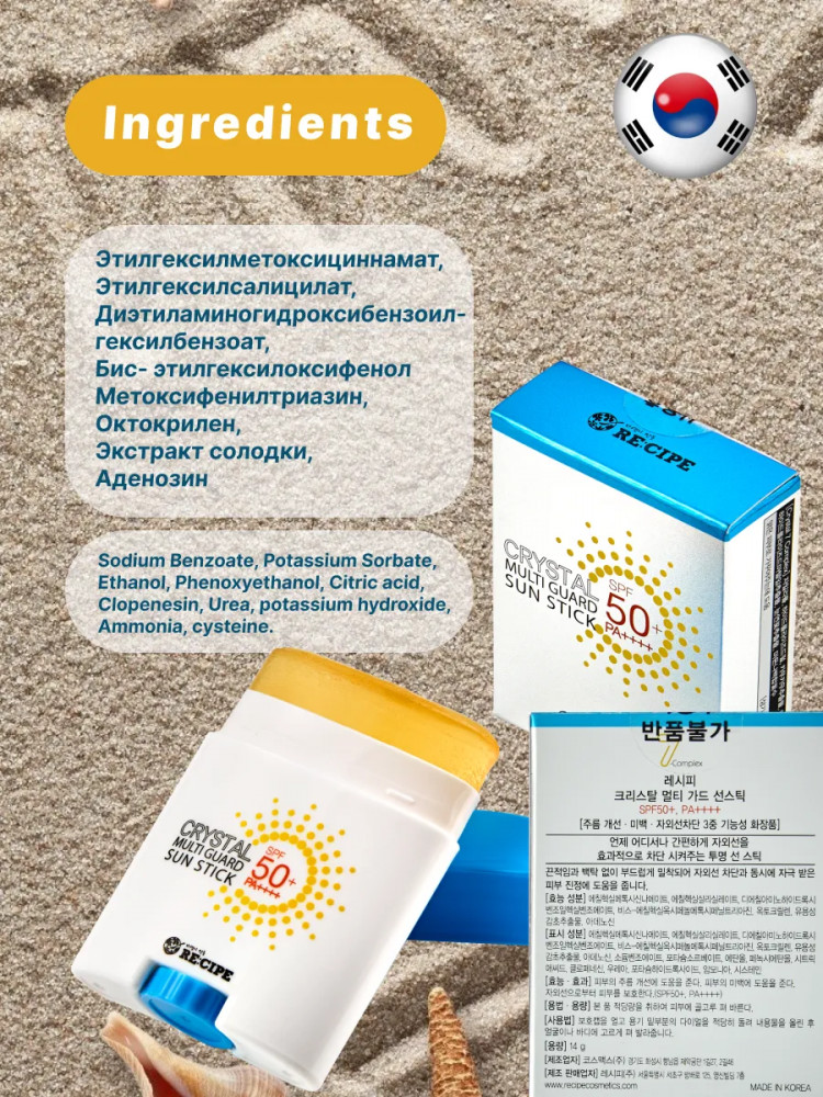 Re:cipe Крем-стик для лица солнцезащитный с витамином С «Crystal Multi Guard» SPF 50+-18% +45