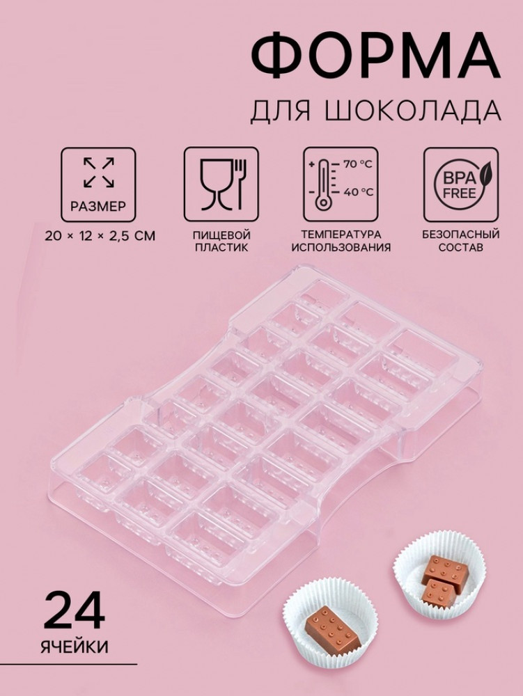 💳 Оплатить за товар можно при получении 🇰🇿 Есть бесплатная доставка по Казахстану от 1 дня 🎁 Копите бонусы с каждой покупки Пластиковые формы для конфет и шоколада — удобный инструмент для приготовления домашней шоколадной плитки, фигурок, конфет и декора. Обычно такие формы из пищевого пластика (часто поликарбоната или полипропилена) прозрачные, легко мыть и использовать: достаточно залить растопленный шоколад, дать застыть и аккуратно вынуть фигурки. |