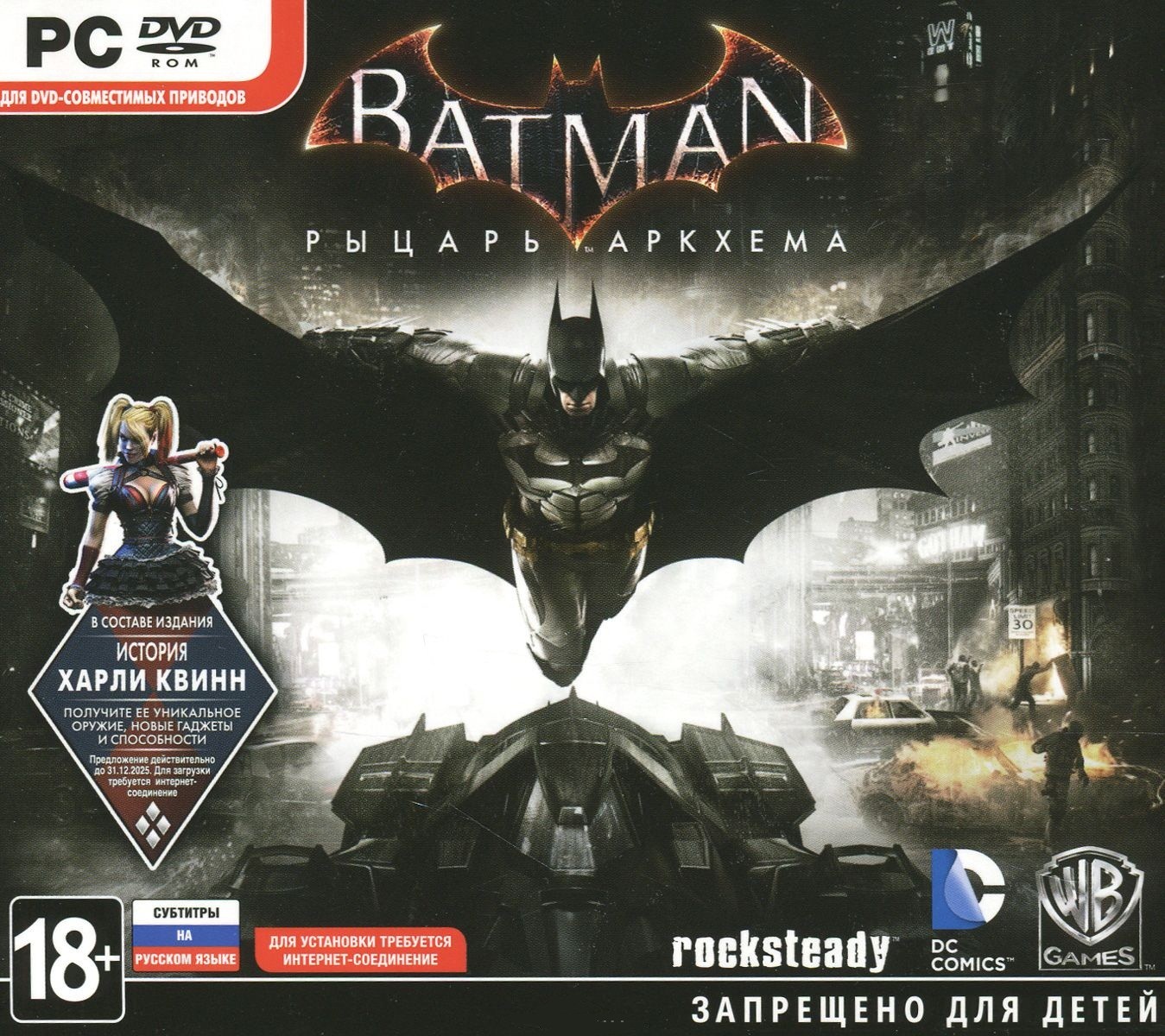 Batman: Рыцарь Аркхема (5 DVD)В данный момент этот товар отсутствует в продаже. Возможно, у нас найдется аналогичный или похожий товар здесь. Для активации игры требуется интернет-соединение, а также учетная запись Steam. |