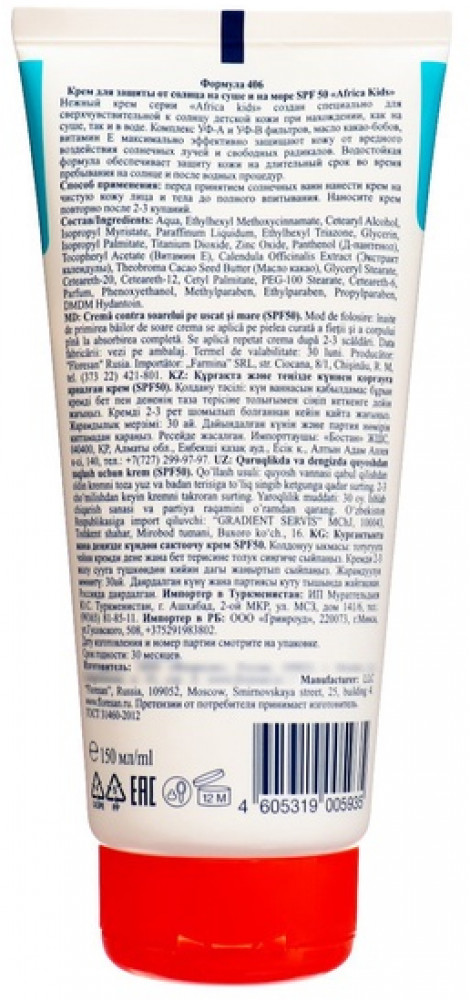Floresan Крем для защиты от солнца на суше и на море «Africa Kids SPF 50»-25% +27