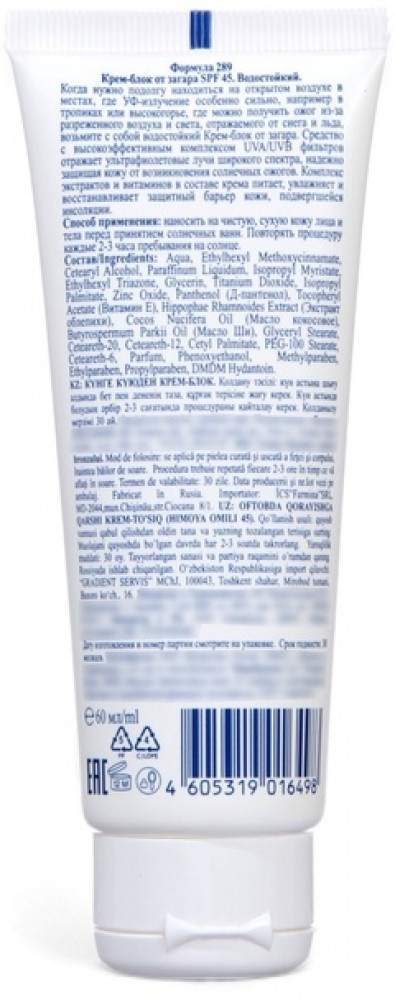 💳 Оплатить за товар можно при получении 🇰🇿 Есть бесплатная доставка по Казахстану от 1 дня 🎁 Копите бонусы с каждой покупки Крем-блок с высокоэффективным комплексом UVA/UVB фильтров надежно защищает кожу от возникновения солнечных ожогов, особенно в первые дни пребывания на солнце. Входящие в состав крема витамин Е и экстракт облепихи питают и увлажняют кожу. Д-пантенол эффективно восстанавливает защитный барьер кожи, подвергшейся инсоляции. Водостойкий. |