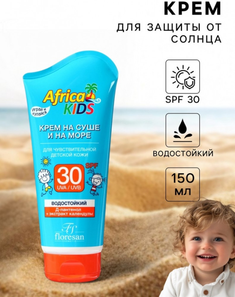 Floresan Крем для защиты от солнца на суше и на море детский «Africa Kids» SPF 30-25% +25