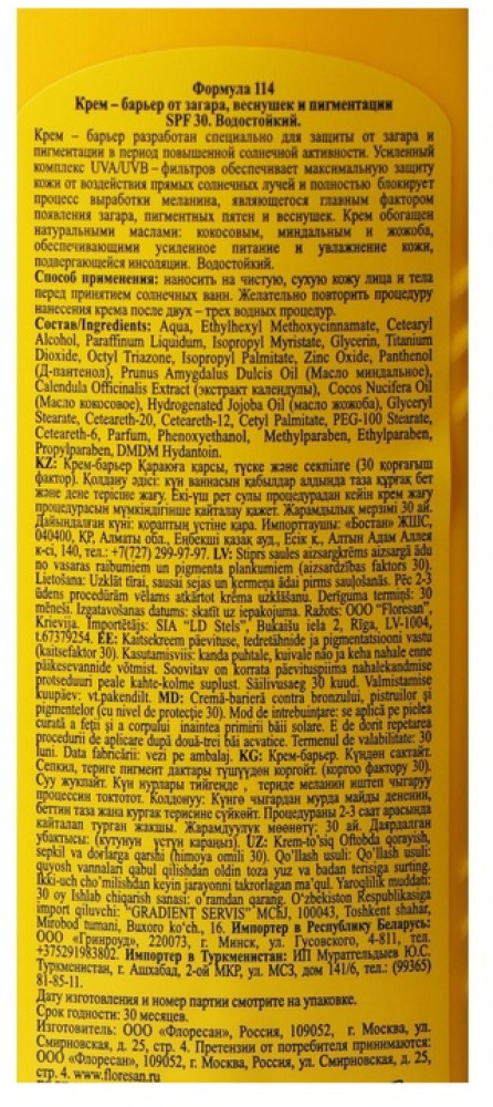 Floresan Крем-барьер от загара SPF 30-25% +23