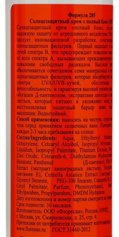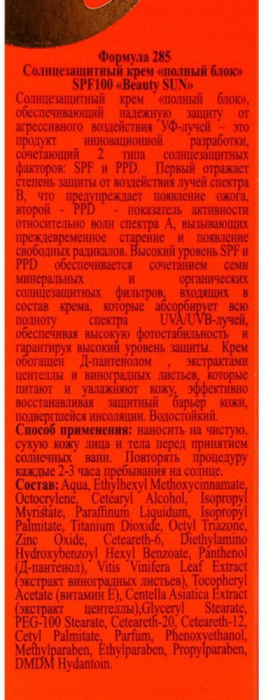 Floresan Крем солнцезащитный для лица и тела «Beauty sun» SPF 100