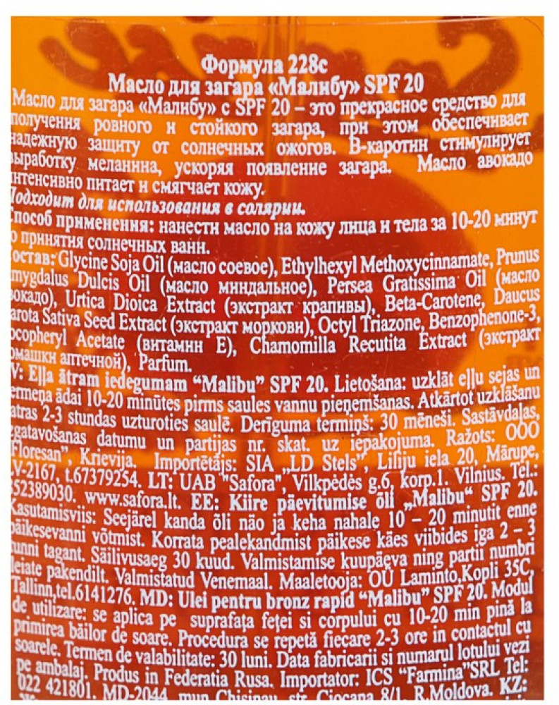 Floresan Масло для быстрого загара «Малибу» SPF 20-25% +24