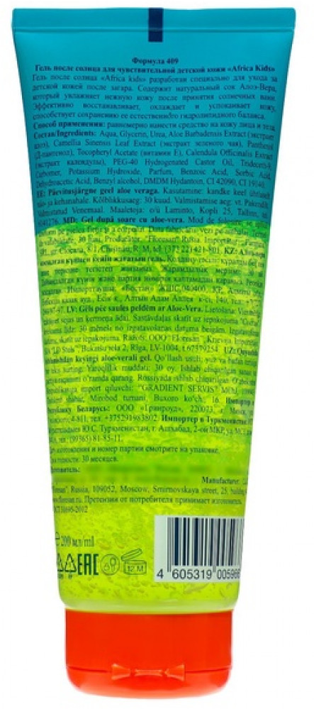 💳 Оплатить за товар можно при получении 🇰🇿 Есть бесплатная доставка по Казахстану от 1 дня 🎁 Копите бонусы с каждой покупки Серия: Africa Kids Гель после солнца с алоэ вера. Увлажняющий и успокаивающий гель специально создан для нежной детской кожи. Этот легкий увлажняющий гель предназначен для ухода за кожей ребенка после пребывания на солнце. Он быстро впитывается, не оставляя липких следов, и дарит коже ощущение свежести и комфорта. |