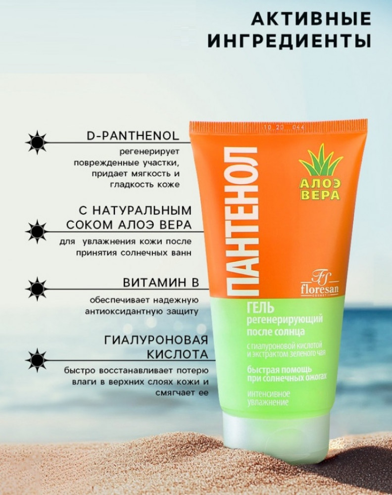 Floresan Гель после солнца регенерирующийс пантенолом и алоэ вера-25% +18