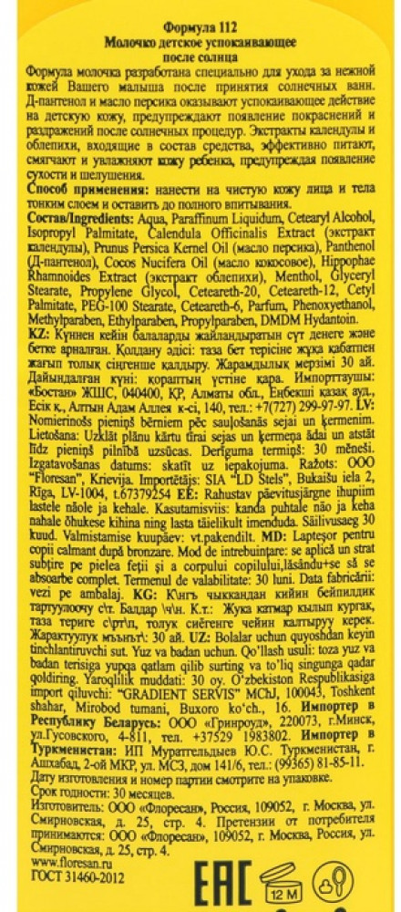 💳 Оплатить за товар можно при получении 🇰🇿 Есть бесплатная доставка по Казахстану от 1 дня 🎁 Копите бонусы с каждой покупки Детское успокаивающее молочко после солнца — это идеальное средство для бережного ухода за нежной кожей ребёнка после активного отдыха на свежем воздухе. Оно помогает восстановить кожу, увлажняет и дарит ощущение комфорта. Лёгкая текстура быстро впитывается, не оставляя липкости, а формула с натуральными компонентами заботится о коже, делая её мягкой и гладкой. Подходит для детской кожи, склонной к раздражениям после солнечных ванн. Лёгкая текстура молочка быстро впитывается, не оставляя жирного блеска. Объём 125 мл удобен для использования дома и в поездках. Может применяться для всего тела, обеспечивая равномерный уход. Хранится при температуре не ниже 0 °C, сохраняя свои свойства. Почему это важно для вашего ребёнка. После долгого пребывания на солнце кожа ребёнка нуждается в особой заботе. |