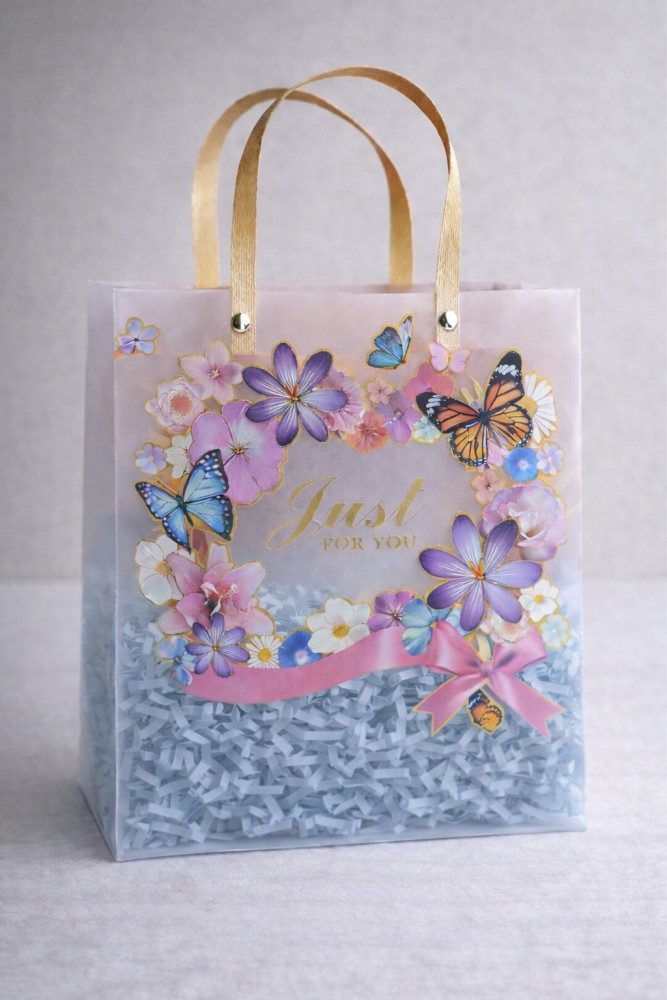 Пакет подарочный прозрачный с серо-голубым наполнителем