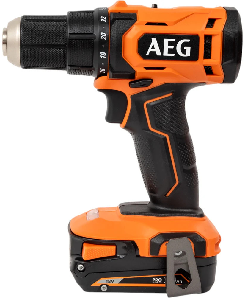 Дрель-шуруповерт AEG BS18G4-202C 4935478630 подходит для отделочных и ремонтных работ в помещении. Позволяет сверлить отверстия и закручивать крепежные элементы. Не зависит от наличия электросети. Благодаря быстрозажимному патрону обеспечивается удобная замена и надежное крепление оснастки. Компактные размеры и легкий вес инструмента обеспечивают удобство при длительной эксплуатации. Вес без аккумулятора 1.3 кг. Вес с аккумулятором 2 А/ч 1.7 кг. Регулируемая скорость помогает подобрать оптимальный режим в зависимости от задачи. Подсветка освещает рабочую область в случае необходимости.