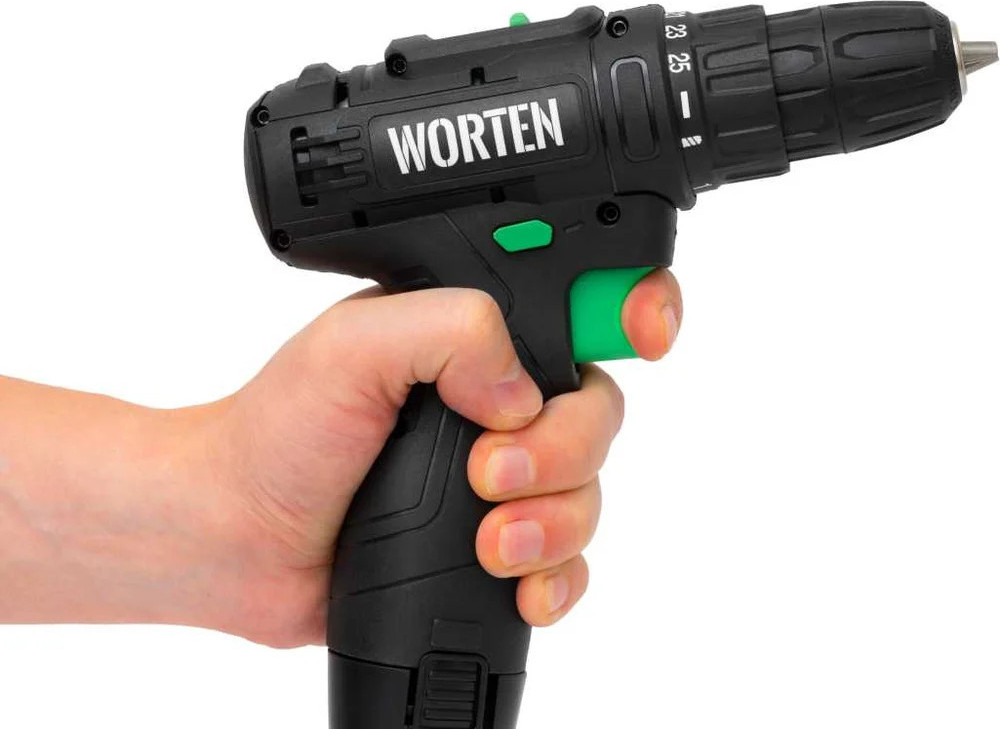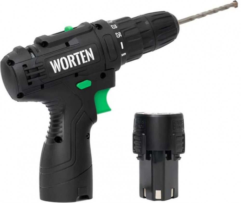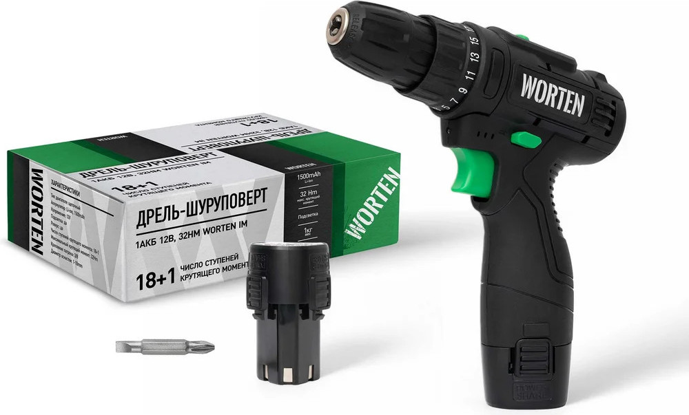 Дрель-шуруповерт 1АКБ 12В, 32Hm IM КА-90000328 WORTEN это надёжный инструмент, с которым можно ремонтировать и мастерить дома и на даче. Инструмент помогает быстро высверливать отверстия нужного диаметра как на деревянной, так и металлической поверхности, быстро вкручивать или извлекать крепеж. Зажимной патрон 3/8 дюйма подходит для самых разных областей применения. Облегченная конструкция и удобная ручка создают все условия для эффективной работы инструментом. Фонарик помогает работать без неудобств при недостаточной освещенности. Дрель имеет переключатель для прямого и реверсивного вращения патрона.