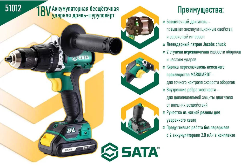 Аккумуляторная дрель-шуруповёрт SATA 51012 предназначена для создания отверстий в различных материалах, а также для работы с резьбовыми соединениями. Характеризуется компактными габаритами, но при этом обеспечивает высокую производительность и длительный срок службы. Этот инструмент идеально подходит для длительных работ и для работы в труднодоступных местах. Благодаря своим небольшим габаритам и лёгкому весу, дрель-шуруповёрт обеспечивает максимальный комфорт при длительной работе любой сложности.