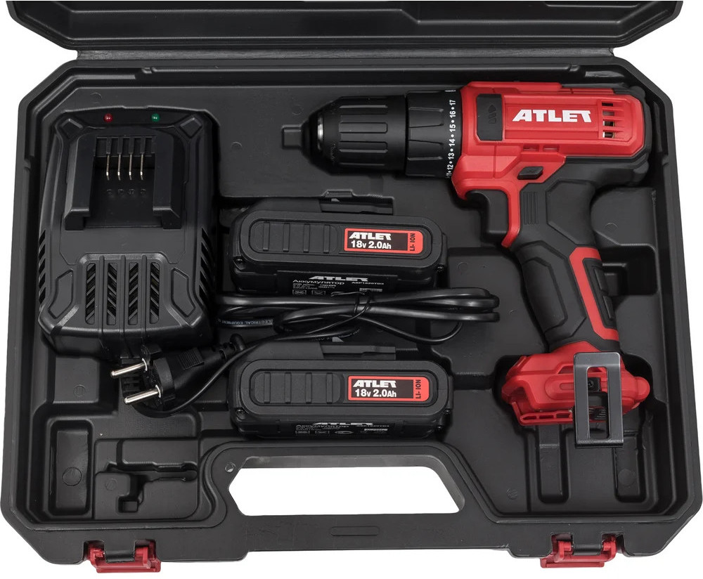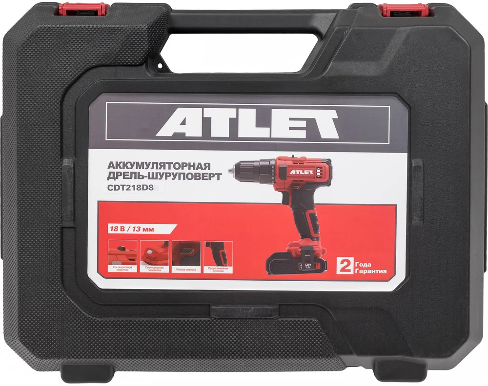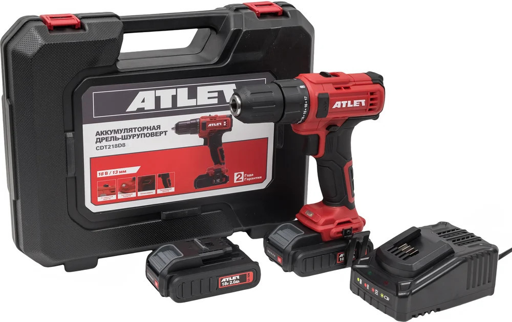 Аккумуляторная дрель-шуруповерт ATLET CDT218D8 18 В — это удобный инструмент для мелкого ремонта и бытовых нужд. Оснащенная двумя съемными литий-ионными аккумуляторами и зарядным устройством, она может использоваться в строительстве и ремонте для сверления и работ с крепежом. Мощный щеточный двигатель обеспечивает крутящий момент до 40 Нм и скорость вращения шпинделя до 1500 об/мин, что позволяет сверлить отверстия в дереве диаметром до 30 мм и в металле диаметром до 13 мм. Встроенная светодиодная подсветка позволяет работать в условиях плохой видимости, а функция реверса переключает направление вращения для завинчивания и отвинчивания. Легкий вес и прорезиненная рукоятка делают инструмент более удобным для длительного использования.