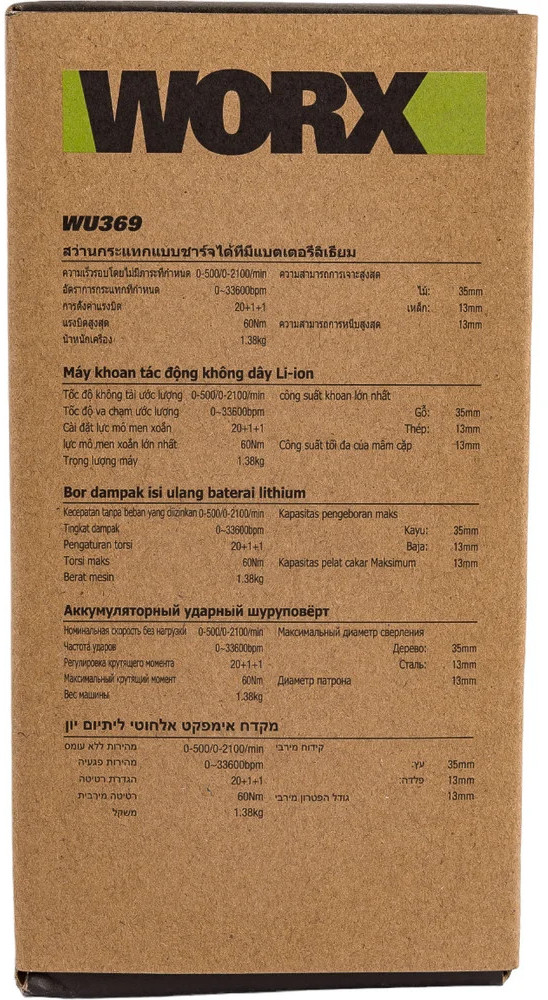 Worx Professional Дрель-шуруповерт ударная ProfessionalВ данный момент этот товар отсутствует в продаже. Возможно, у нас найдется аналогичный или похожий товар здесь. Аккумуляторная дрель-шуруповерт WORX Professional ударный, бесщеточный 20В, 60Нм, 2А/ч×2, ЗУ 1.2 А/ч, сумка WU369 — это универсальная, ударная, компактная и легкая дрель-шуруповёрт c инновационным бесщеточным двигателем. Который значительно улучшает характеристики устройства по сравнению с щеточной модели. А именно благодаря такому типу мотора дрель-шуруповёрт меньше нагревается, работает до 50% дольше и имеет на 25% больше крутящий момент. Срок службы мотора до 10-ти раз дольше. Модель оснащена быстрозажимным 13 мм, полностью металлическим патроном с блокировкой шпинделя — фиксация оснастки одной рукой. А также 2 рабочие скорости, одна предназначена для работы с крепежом, а вторая для сверления. Наличие муфты регулировки крутящего момента(20+1+1 позиций ступеней) позволит максимально точно выбрать режим работы. Дрель оснащена светодиодной подсветкой рабочей зоны. Поставляется в комплекте с 2 аккумуляторами, которые взаимозаменяемы с другими инструментами и садовой техникой WORX Professional. |
