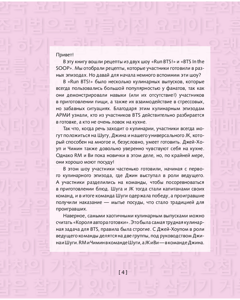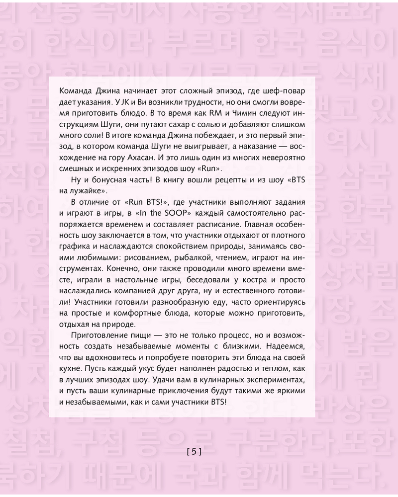 💳 Оплатить за товар можно при получении 🇰🇿 Есть бесплатная доставка по Казахстану от 1 дня 🎁 Копите бонусы с каждой покупки Серия: Мировая еда. Кинорецепты Погрузитесь в мир кулинарии вместе с вашими любимыми участниками BTS в уникальной книге, вдохновленной шоу «Run BTS»! Эта кулинарная книга предлагает не только рецепты, но и захватывающие истории, связанные с каждым блюдом, которые участники готовили в шоу. |