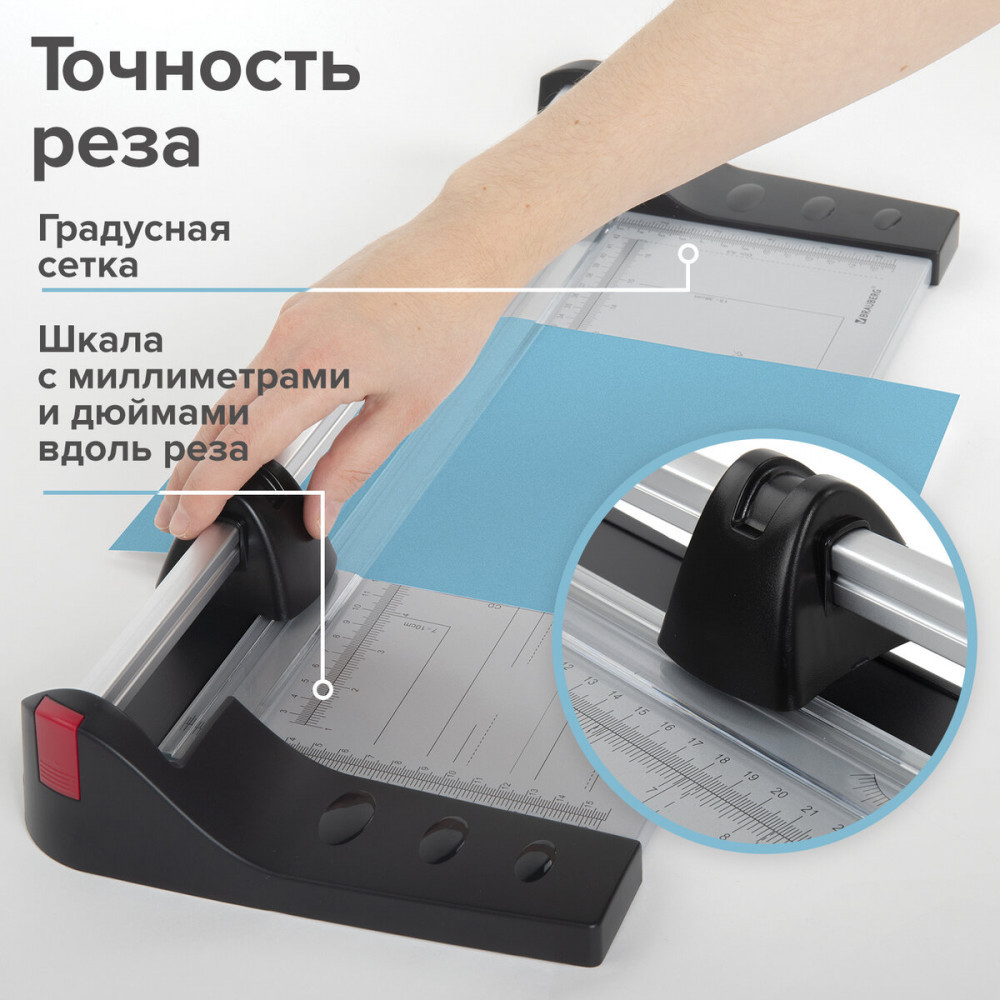 💳 Оплатить за товар можно при получении 🇰🇿 Есть бесплатная доставка по Казахстану от 1 дня 🎁 Копите бонусы с каждой покупки Роликовый резак для бумаги BRAUBERG может использоваться в офисах, учебных заведениях, фотомастерских для работы с документами и фотографиями, а также дома для хобби и творчества. Позволяет одновременно разрезать до 10 бумажных листов формата А3. |
