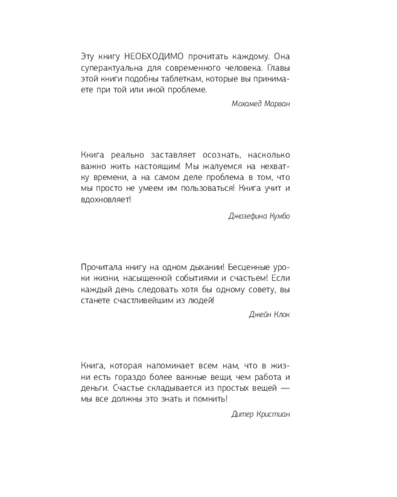 💳 Оплатить за товар можно при получении 🇰🇿 Есть бесплатная доставка по Казахстану от 1 дня 🎁 Копите бонусы с каждой покупки Серия: Шарма. Эксклюзив Суета, жажда наживы, пустые разговоры и бесполезная трата времени — вот на что большинство из нас тратит свою жизнь. Но всё это не приносит счастья. Поэтому многие полагают, что счастье — это миф. Но счастье — совсем рядом! И его может получить каждый из нас. Просто начните читать эту книгу, выполнять несложные упражнения и следовать простым советам, которые она предлагает. И вы «очнетесь»! Вы обретете истинный смысл, ощутите настоящую радость, в вашу жизнь войдет счастье и пребудет с вами до вашего последнего вздоха. Перед вами великая книга, которая изменит вашу судьбу! |
