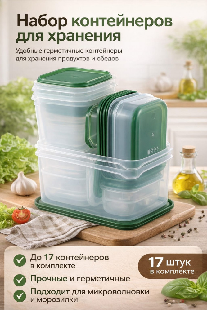 Практичный и универсальный набор контейнеров из 17 предметов — идеальное решение для хранения продуктов.