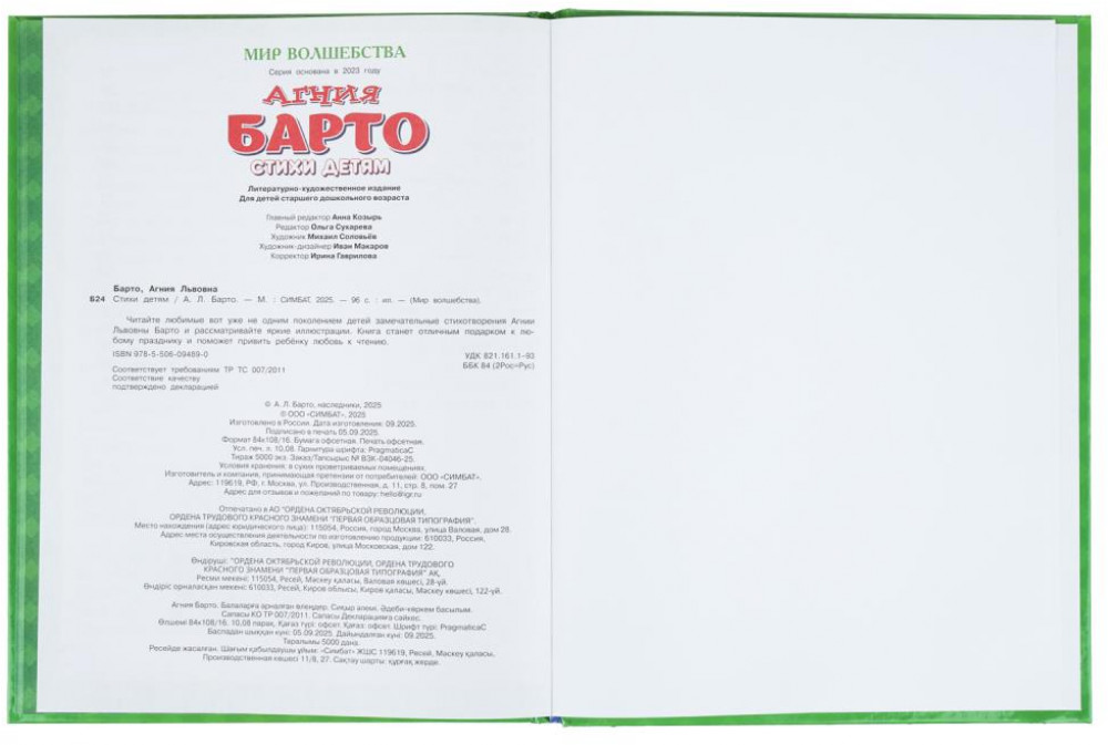 💳 Оплатить за товар можно при получении 🇰🇿 Есть бесплатная доставка по Казахстану от 1 дня 🎁 Копите бонусы с каждой покупки Серия: Мир волшебства Книга «А. Барто. Стихи детям» из серии «Мир волшебства» ТМ «УМка» — отличный вариант для увлекательного чтения. Читайте любимые вот уже не одним поколением детей замечательные стихотворения Агнии Львовны Барто и рассматривайте яркие иллюстрации. Книга станет отличным подарком и поможет привить ребёнку любовь к чтению. |