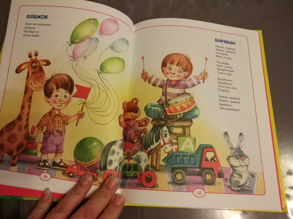 Книга очень понравилась,большая, яркая. Читаем ее постоянно , ребенку год и 9 месяцев , как раз самое время начинать учить стишки А.Барто. Спасибо Флип!