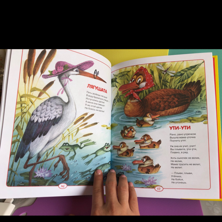 Книга очень понравилась, большой формат, яркие крупные иллюстрации, собраны самые известные стихи, которые легко можно выучить с малышом. К тому же по картинкам можно изучать окружающий мир и названия предметов, цветов. Доставка быстрая, спасибо Флип!