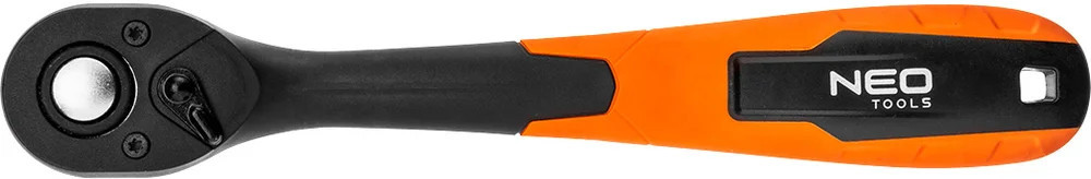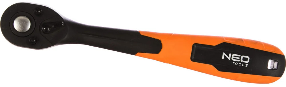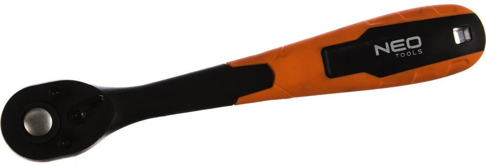 Трещоточный ключ (изогнутый, 1/2 дюйма, 250 мм) NEO 08-511 выполнен из композитного материала высокой прочности. Двухкомпонентная рукоятка не скользит в руках. Трещоточный механизм изготовлен из хромованадиевой стали. Угол поворота инструмента не менее 5 градусов.