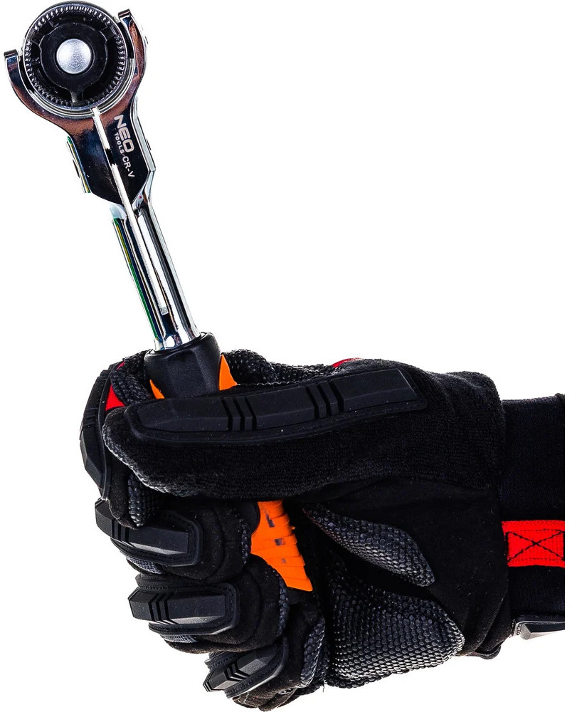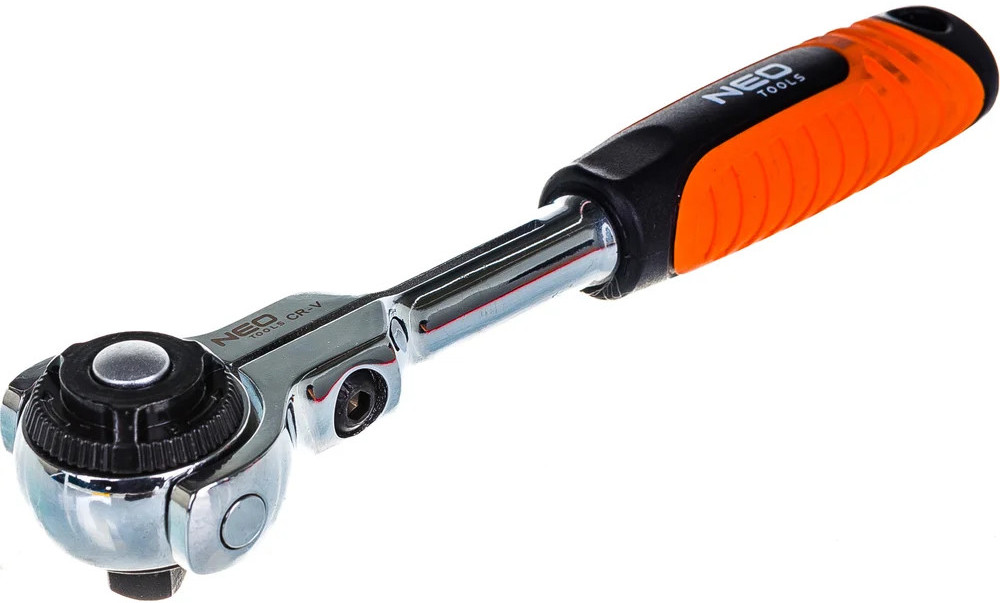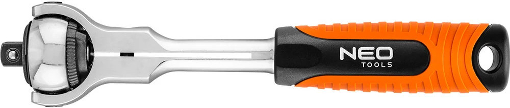 NEO Tools Ключ трещоточный изготовлен в соответствии со стандартом DIN 3122. Храповой механизм с 90 зубцами изготовлен из чрезвычайно прочной хромованадиевой стали, увеличивающей срок службы инструмента. Эргономичная двухкомпонентная рукоятка повышает комфорт работы.