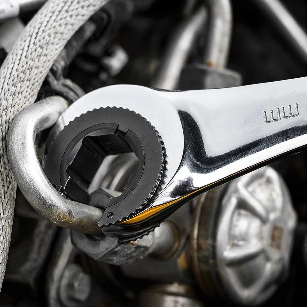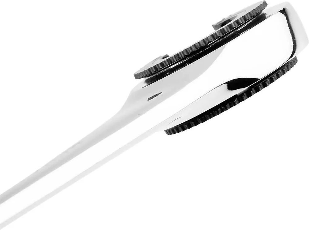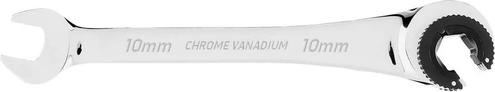 Ключ гаечный с храповым механизмом — это инструмент, который поможет при проведении слесарных и механических работ. Он оснащен храповым механизмом с 72 зубцами, что позволяет даже при минимальном перемещении обеспечить точную и эффективную работу. Ключ изготовлен из прочной хром-ванадиевой стали и готов к работе даже в сложных условиях. Хромированное покрытие обеспечивает дополнительную устойчивость к ржавчине и коррозии, значительно продлевая срок его службы. Ключ идеально подходит для установки и снятия гаек крепления топливной и тормозной систем и других узлов. Его компактная конструкция позволяет легко работать даже в труднодоступных местах, где традиционный инструмент может не справиться.