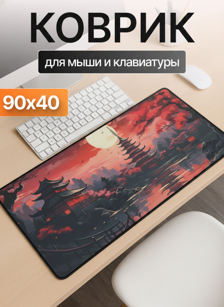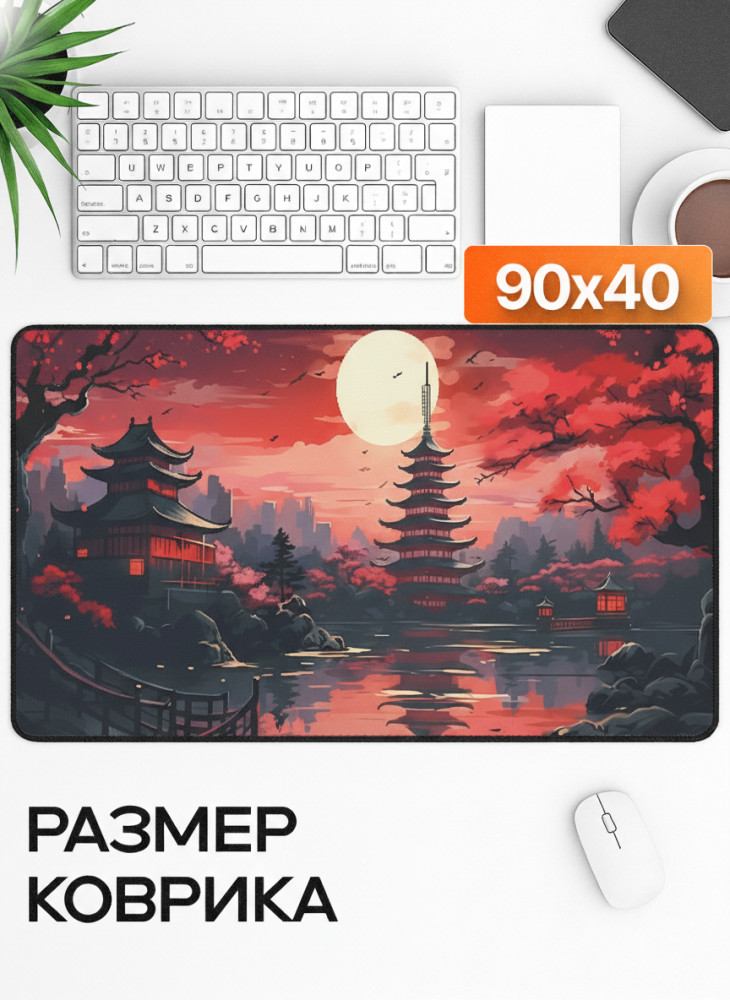 Погрузитесь в атмосферу японской ночи под светом полной луны. Коврик «Ночная сакура» украшен изображением пагод, сакуры и лунного неба в ярких ало-тёмных оттенках. Идеально подойдёт для тех, кто ценит эстетику, стиль и комфорт в каждой детали рабочего пространства.