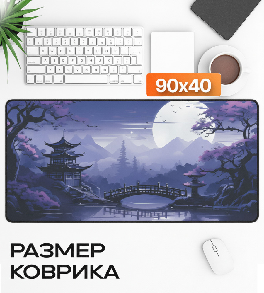 Погрузитесь в атмосферу японской ночи под светом полной луны. Коврик «Ночная сакура» украшен изображением пагод, сакуры и лунного неба в ярких ало-тёмных оттенках. Идеально подойдёт для тех, кто ценит эстетику, стиль и комфорт в каждой детали рабочего пространства.