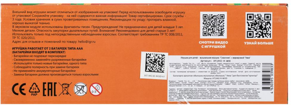 💳 Оплатить за товар можно при получении 🇰🇿 Есть бесплатная доставка по Казахстану от 1 дня 🎁 Копите бонусы с каждой покупки Серия: Чебурашка Развивающая игрушка «Сказочник Чебурашка» ТМ «УМка» станет прекрасным подарком для маленького поклонника милого ушастика. Вашего малыша приведёт в восторг эта игрушка в виде забавного ушастого зверька Чебурашки. Он с удовольствием будет нажимать на кнопки и слушать весёлые песенки, а также интересные сказки, знакомиться с цветами с помощью занимательных стихов. Наличие отдельной кнопки включения-выключения, которая также помогает регулировать громкость звука, делает игру со сказочником более удобной. |
