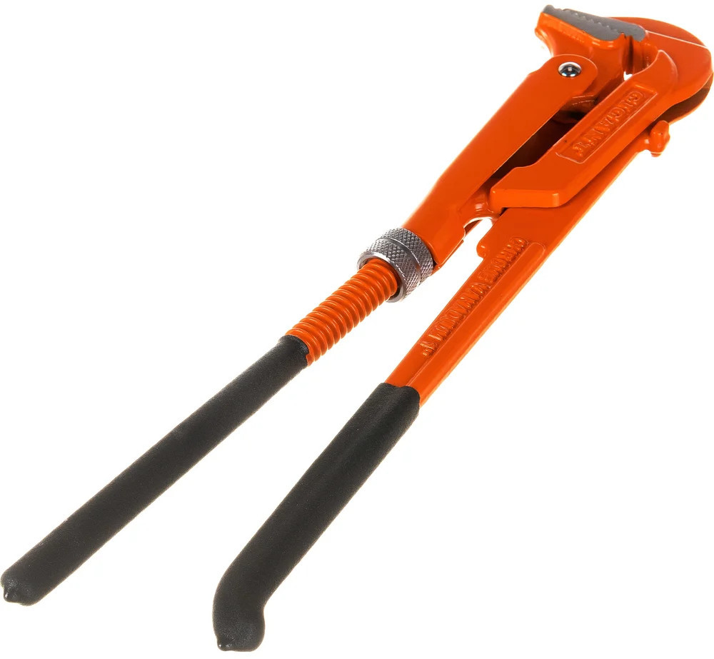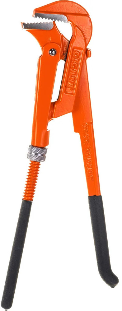 Трубный ключ Gigant, угол 90 градусов подходит для установки, демонтажа и ремонта сантехнического, водопроводного и газового оборудования. Инструмент работает на сжатие, что снижает вероятность срыва с гайки и ее повреждения. Ключ изготовлен из Cr-V стали, устойчивой к деформации, истиранию, ударным нагрузкам. Удобная форма рукоятки обеспечивает надежный зажим без приложения большой физической силы. Зубчатая поверхность губок обеспечивает надежность захвата гладких округлых предметов.