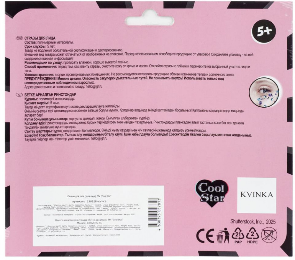 Стразы для лица ТМ «Cool Star» помогут создать оригинальный сверкающий образ. Эти роскошные стразы прекрасно смотрятся на лице и теле и хорошо крепятся благодаря клеевой основе. С таким аксессуаром легко создать эффектный и броский макияж. Перед нанесением рекомендуется очистить лицо, оно не должно быть жирным или грязным.