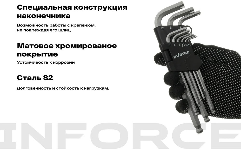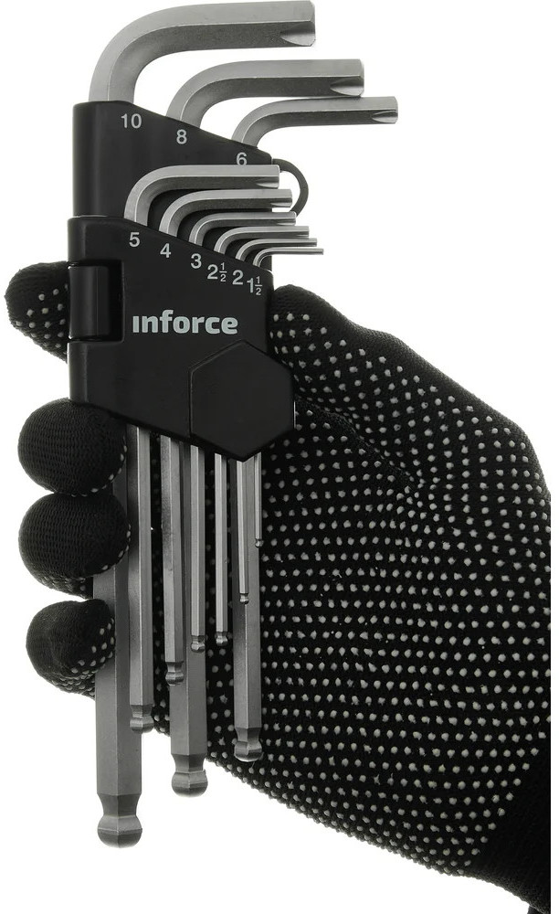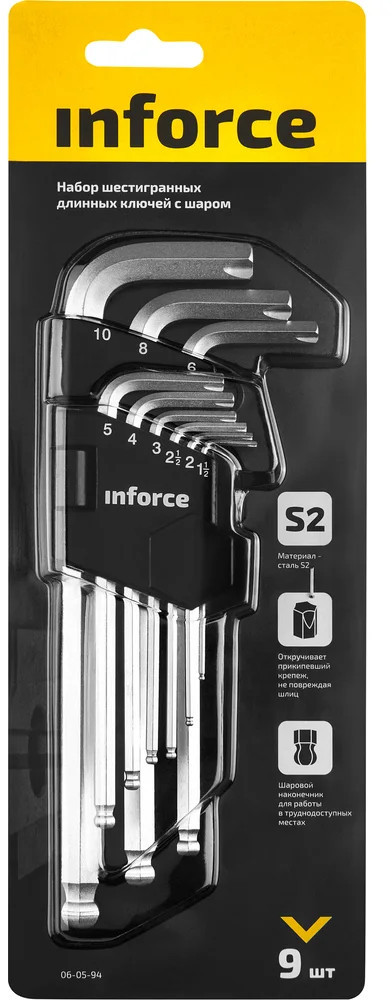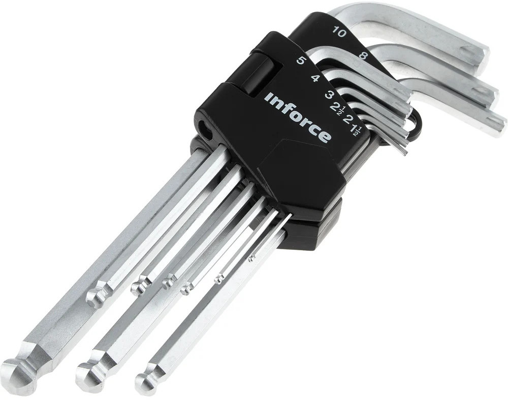 Набор шестигранных длинных ключей с шаром 9 шт. Inforce 06-05-94 позволяют работать с крепежом быстро и эффективно. Инструмент прост в использовании и не требует больших усилий для ввода в паз болта — шаровое окончание позволяет работать даже под углом.