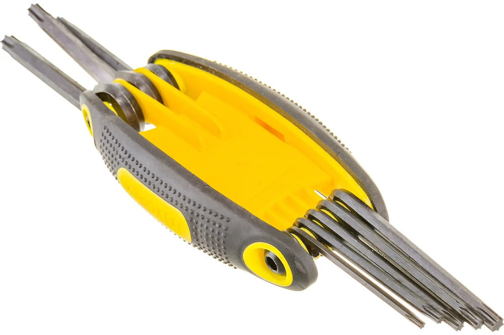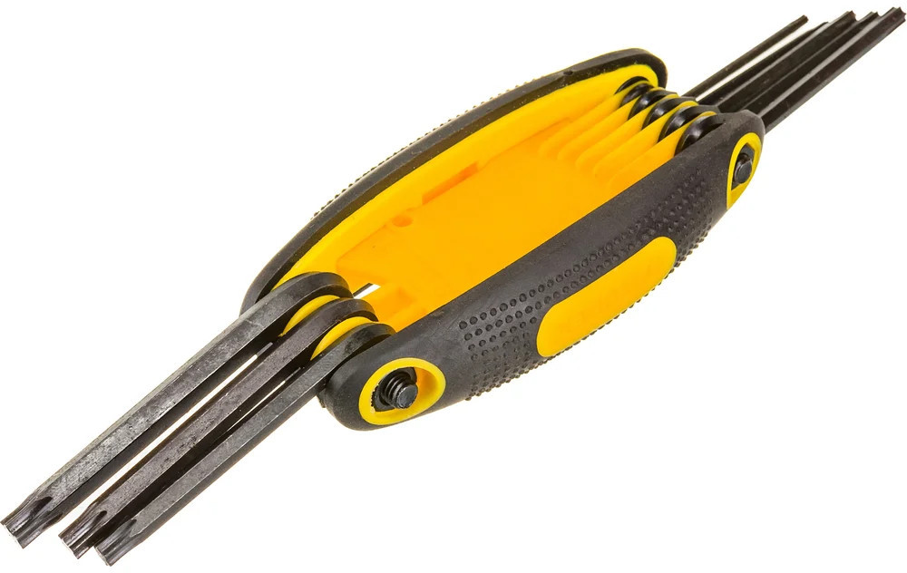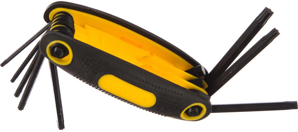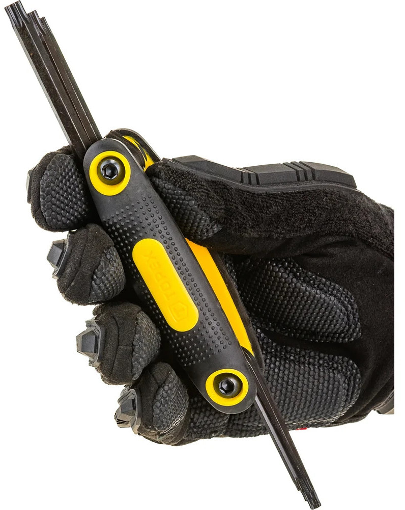 Набор ключей Torx TOPEX T9-T40, 8 шт. 35D959 произведен из прочной хромомолибденовой стали, гарантирующей долгий срок службы инструмента. Пластмассовая рукоятка покрыта антискользящим материалом, тем самым обеспечивает комфортную работу. Благодаря практичной конструкции рукоятки, спрятанные в нее ключи всегда будут под рукой.