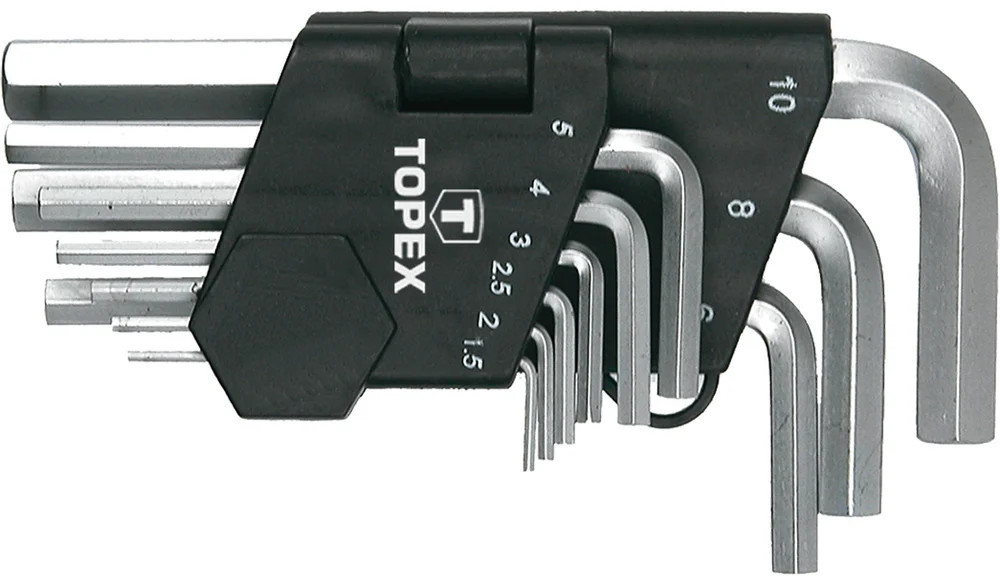 Ключи шестигранные короткие TOPEX 35D955 размеры 1.5-10 мм, изготовлены из прочной хромованадиевой стали, обеспечивающей долгий срок службы инструмента. Удобная пластмассовая упаковка с отделениями для каждого ключа облегчает их хранение.