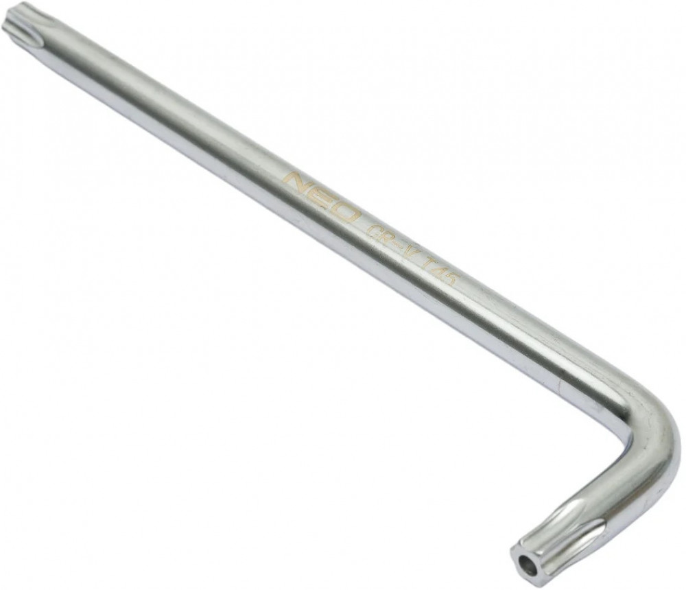 Ключ Torx NEO 09-557 предназначен для выполнения работ с крепежом, имеющим шлиц TORX. Г-образная форма инструмента позволяет работать в труднодоступных местах. Ключ выполнен из хромованадиевой стали, благодаря чему имеет долгий срок эксплуатации.