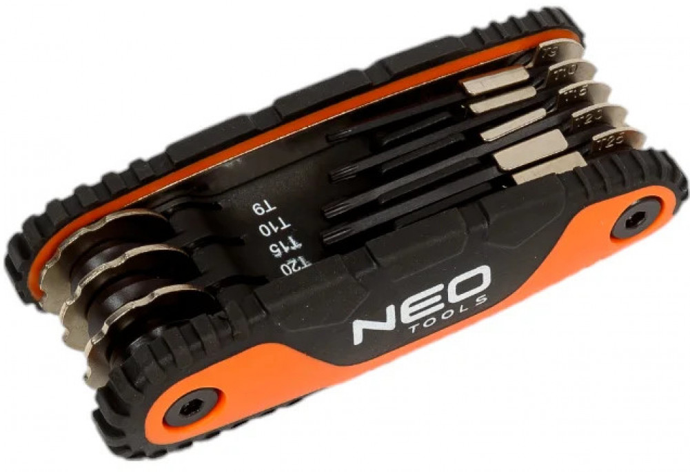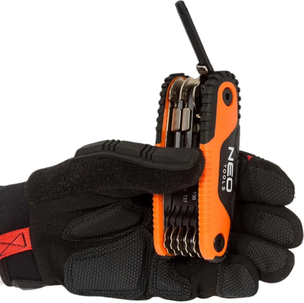 Ключи NEO Torx, с ручкой, в наборе 8 шт. 09-573 представляют собой набор из 8 предметов, помещенных в держатель карманного ножа. Каждый ключ может быть использован путем наклона и блокировки. Каждый наконечник может быть зафиксирован в 3 положениях. Это облегчает работу, даже когда затянутый винт или болт находится в неудобном положении.
