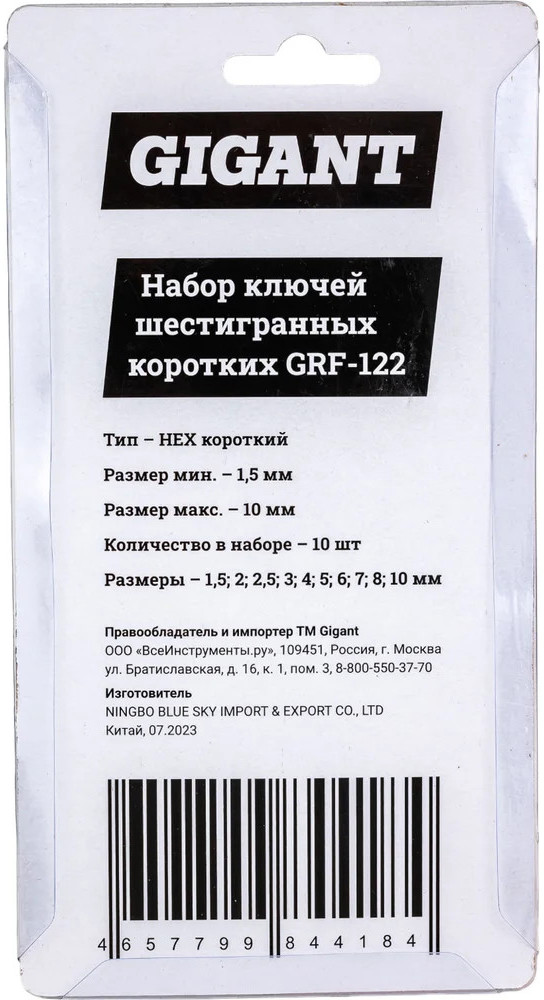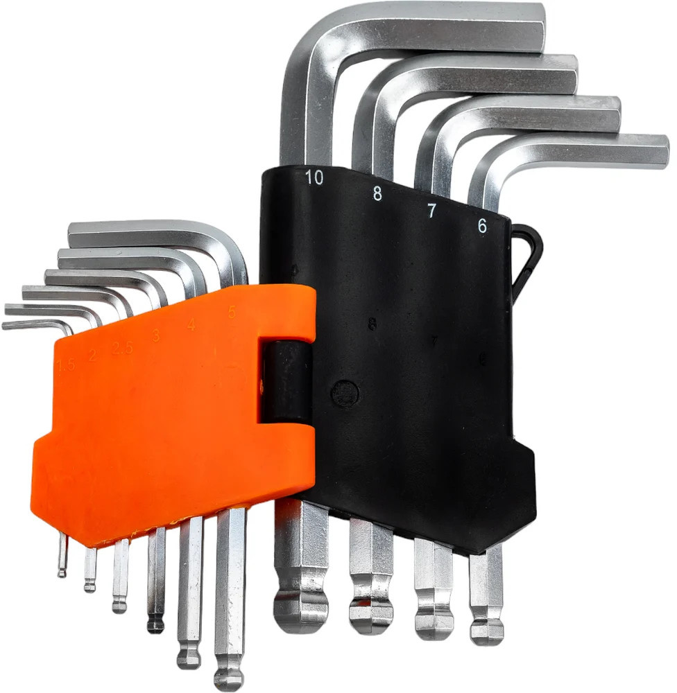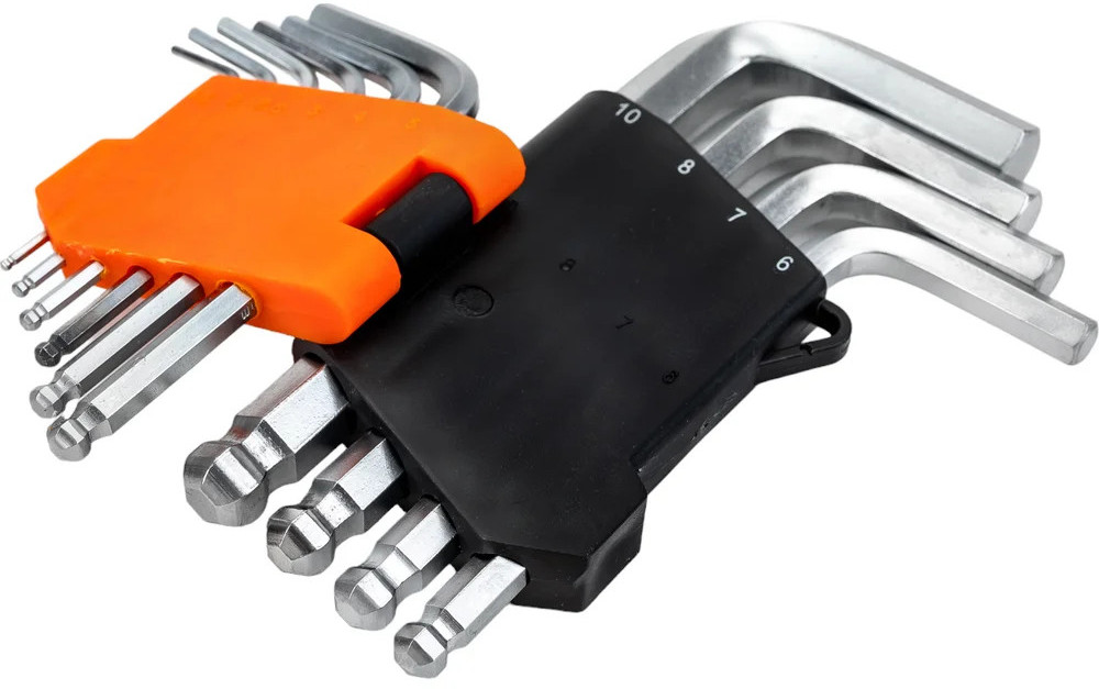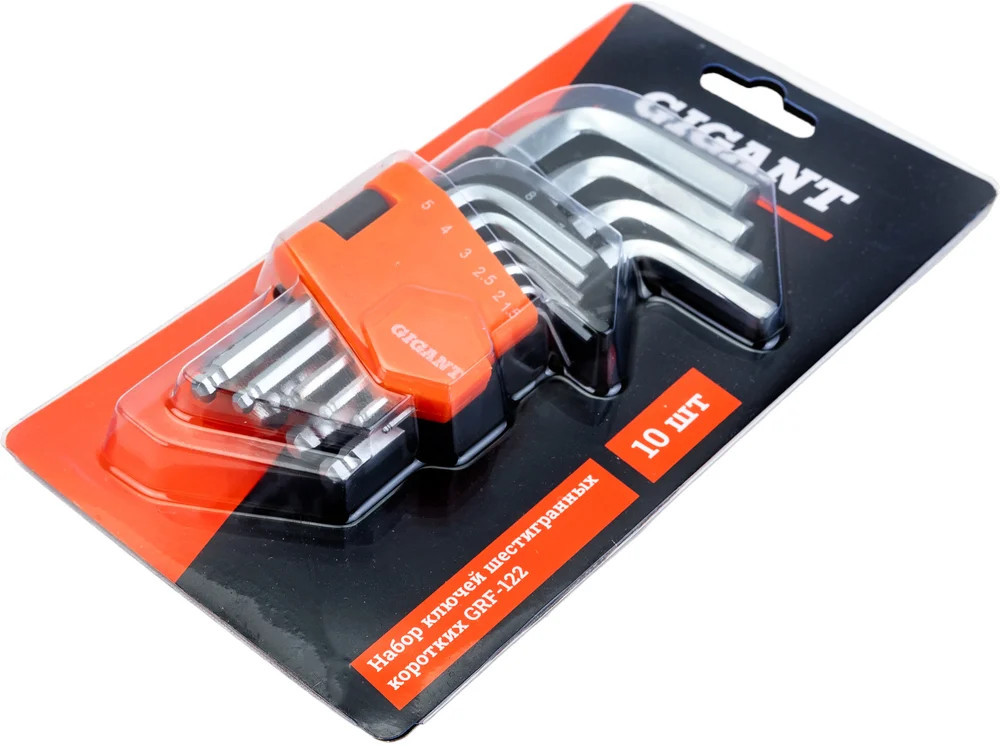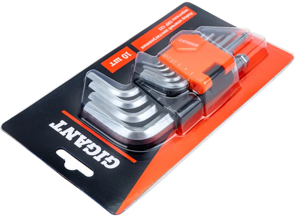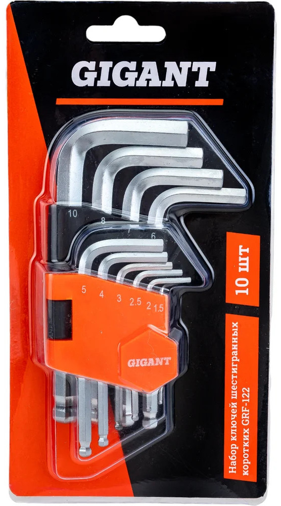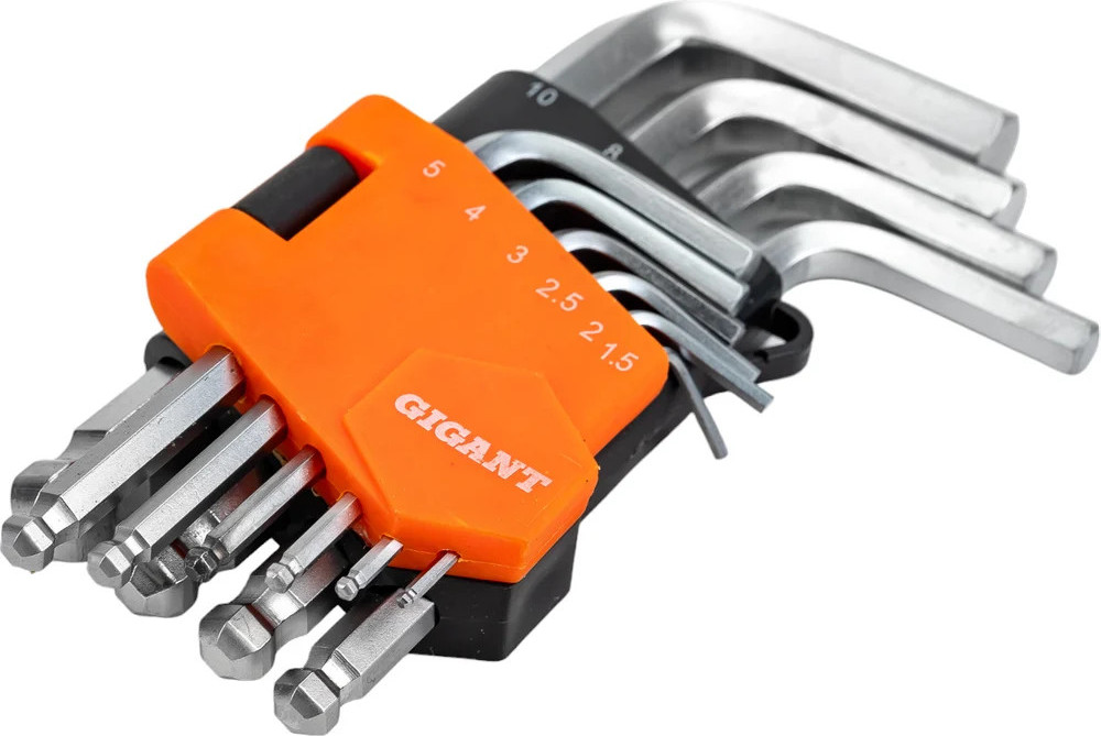 Набор г-образных шестигранных шаровых ключей 10 шт. Gigant grf-122 предназначен для монтажа и демонтажа шестигранных соединений. Корпус инструментов изготовлен из хромованадиевой стали, которая прошла процесс холодного проката. Повышенная твердость обеспечивает долгий срок службы. Г-образная форма увеличивает крутящий момент и комфорт применения. Пластиковый держатель необходим для компактности хранения инструментов.