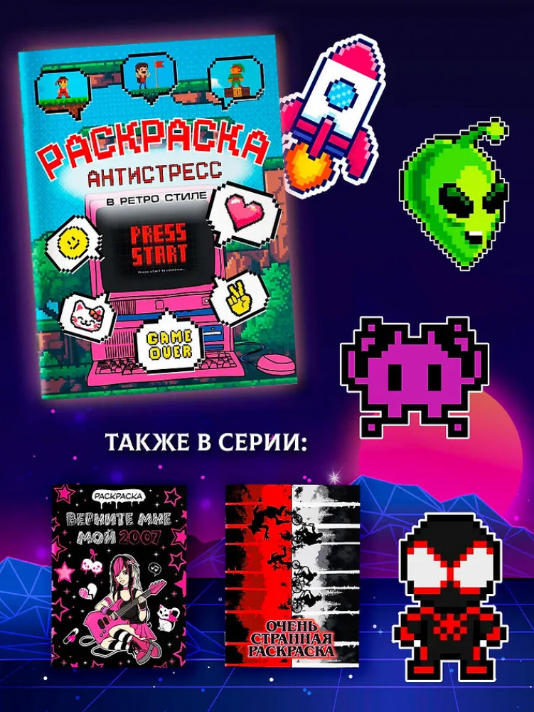 💳 Оплатить за товар можно при получении 🇰🇿 Есть бесплатная доставка по Казахстану от 1 дня 🎁 Копите бонусы с каждой покупки Серия: Любимые герои. Раскраски и наклейки Погрузись в мир ностальгии и видео игр. Тех самые, из детства. На страницах этой раскраски тебя ожидают восьмибитные миры. Оживи их с помощью своей фантазии: хватай краски и карандаши и начинай творить! Пусть эти миры закрутят тебя в яркий водоворот цвета и эмоций. |