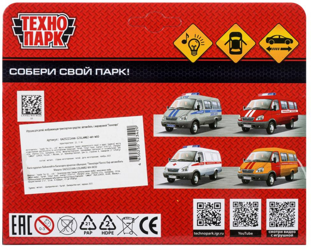 💳 Оплатить за товар можно при получении 🇰🇿 Есть бесплатная доставка по Казахстану от 1 дня 🎁 Копите бонусы с каждой покупки Металлическая модель «ГАЗ-3221 «ГАЗель» Скорая помощь» ТМ «Технопарк» станет отличным подарком для маленького автолюбителя. Металлическая модель кареты скорой помощи, выполненная с учётом всех особенностей прототипа, обязательно понравится ребёнку. Благодаря открывающимся дверям, которые делают машинку максимально похожей на настоящую, всегда можно заглянуть внутрь кабины, чтобы убедиться — каждая деталь отлично проработана. Реалистичный дизайн плюс световые и звуковые эффекты данной модели позволят с головой погрузиться в игру, придумывая новые интересные сюжеты. |