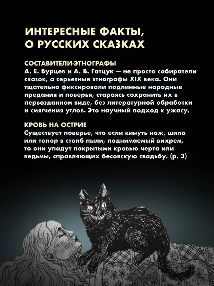 💳 Оплатить за товар можно при получении 🇰🇿 Есть бесплатная доставка по Казахстану от 1 дня 🎁 Копите бонусы с каждой покупки Серия: Русский фандом: классика Забудьте о привычных добрых сказках детства и приготовьтесь к погружению в истинные, мрачные глубины русского народного фольклора. Эти истории, рожденные жестокими временами, лишены светлого волшебства. На страницах книги оживают зловещие образы Бабы Яги, Кощея Бессмертного, коварных ведьм, мертвецов и упырей – во всей их жуткой первозданности. Это – страшные русские сказки, где мистические существа и леденящие кровь легенды правят безраздельно. |