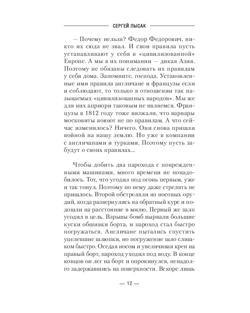 💳 Оплатить за товар можно при получении 🇰🇿 Есть бесплатная доставка по Казахстану от 1 дня 🎁 Копите бонусы с каждой покупки Серия: Военная боевая фантастика Восточная война, как ее называют в Европе, еще не стала Крымской. Кампания на Черном море, которая казалась раньше легкой прогулкой и не вызывала сомнений в успехе «приструнить» Россию, неожиданно оборачивается серьезными проблемами. В стане врага разлад. Огромная армада из военных кораблей и грузовых судов с десантом на борту выходит из Варны, чтобы пересечь Черное море и высадить десант в Евпатории, дабы одним ударом решить «русский вопрос». Но появляется благоприятный момент для применения нового неизвестного оружия, разработанного капитаном пакетбота «Лебедь» Юрием Давыдовым, бывшим не так давно контр-адмиралом Космофлота Сергеем Тихоновым в другом мире. Сможет ли он вместе со своим электронным другом и помощником Гансом — искусственным интеллектом, находящимся в секретном электронном приборе АДМ, коренным образом изменить ход Восточной войны? Чтобы она никогда не стала Крымской. И сделать так, чтобы европейские «цивилизаторы» бежали без оглядки с Черного моря. |