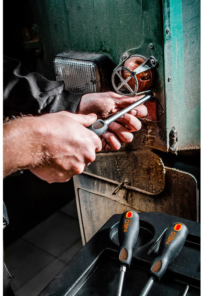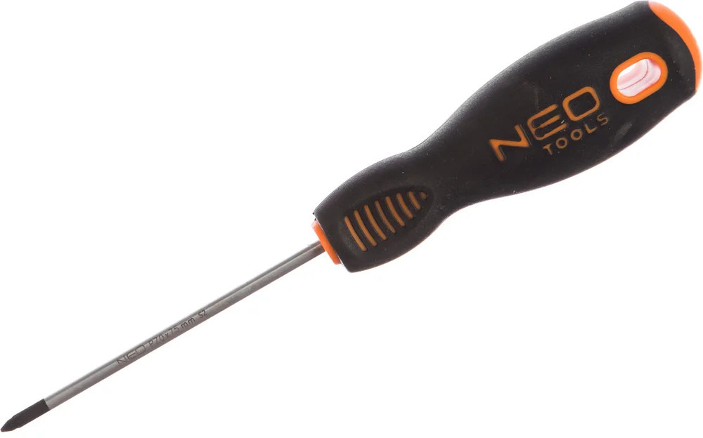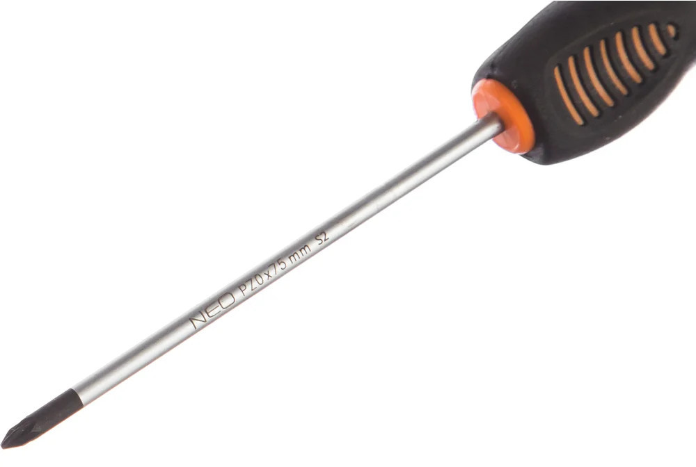 Крестовая отвертка NEO PZ0×75 мм CrMo 04-031 оснащена прочным и жестким стержнем из хромомолибдена. Рукоять надежно закреплена, что позволяет максимально передавать усилие от ладони на крепеж.