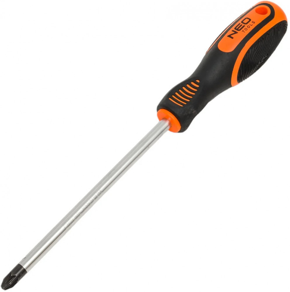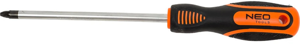 NEO Tools Крестовая отвертка PZ3×150 мм 04-185 предназначена для выполнения механических работ, а также работ, выполняемых мастерами-любителями. Стержень изготовлен из прочной хромованадиевой стали, обеспечивающей долгий срок службы инструмента. Магнитное жало из закаленной стали облегчает работу с инструментом. Трехгранная форма рукоятки с профилированной опорой для большого пальца уменьшает нагрузку на ладонь во время работы и облегчает быстрое вращение отвертки. Двухкомпонентная рукоятка предотвращает скольжение в ладони, устойчива к воздействию химических веществ, масел и смазок.