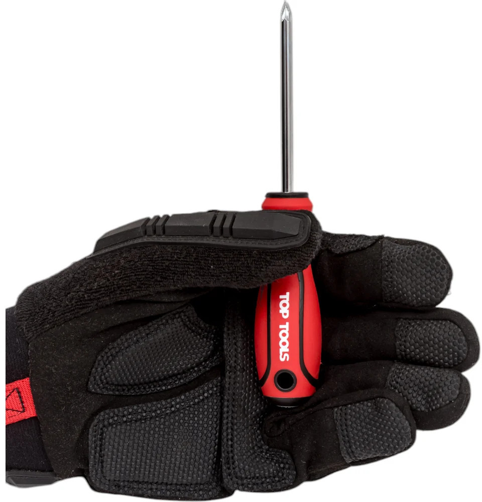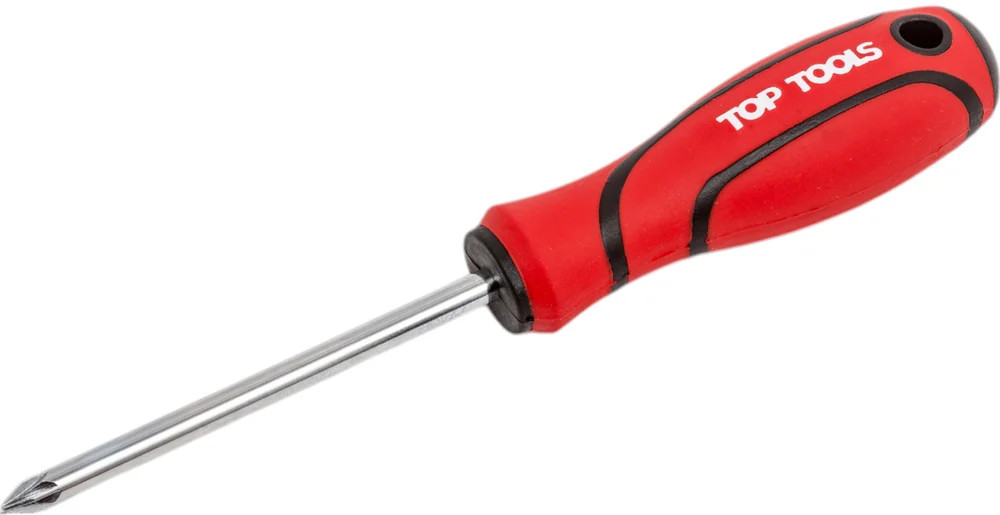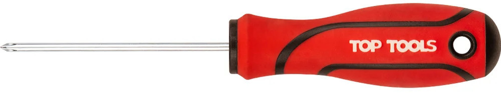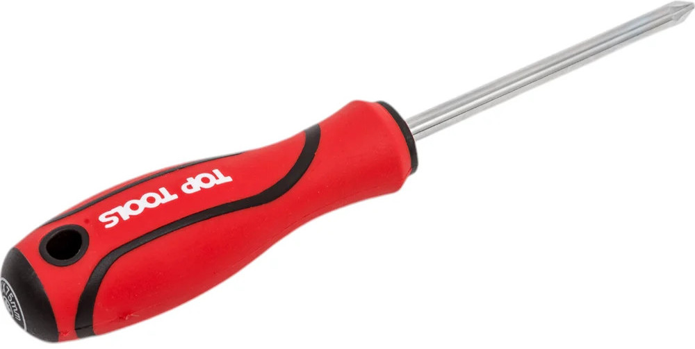 Отвертка Top Tools крестовая, PZ1×75 мм 39D019 представляет собой надежный инструмент, который отличается высокой прочностью и удобством в работе. Ее наконечник типа Pozidriv (PZ) обеспечивает надежное сцепление с крепежными элементами, что делает ее идеальной для работы с шурупами соответствующего стандарта. Длина стержня составляет 75 мм, что позволяет работать в труднодоступных местах. Стержень изготовлен из углеродистой стали, что гарантирует долговечность и устойчивость к износу. Рукоять из ABS-пластика с TPR покрытием обеспечивает комфортный и надежный захват, предотвращая скольжение в руке. Красно-черная цветовая гамма рукояти делает инструмент легко узнаваемым в наборе инструментов.