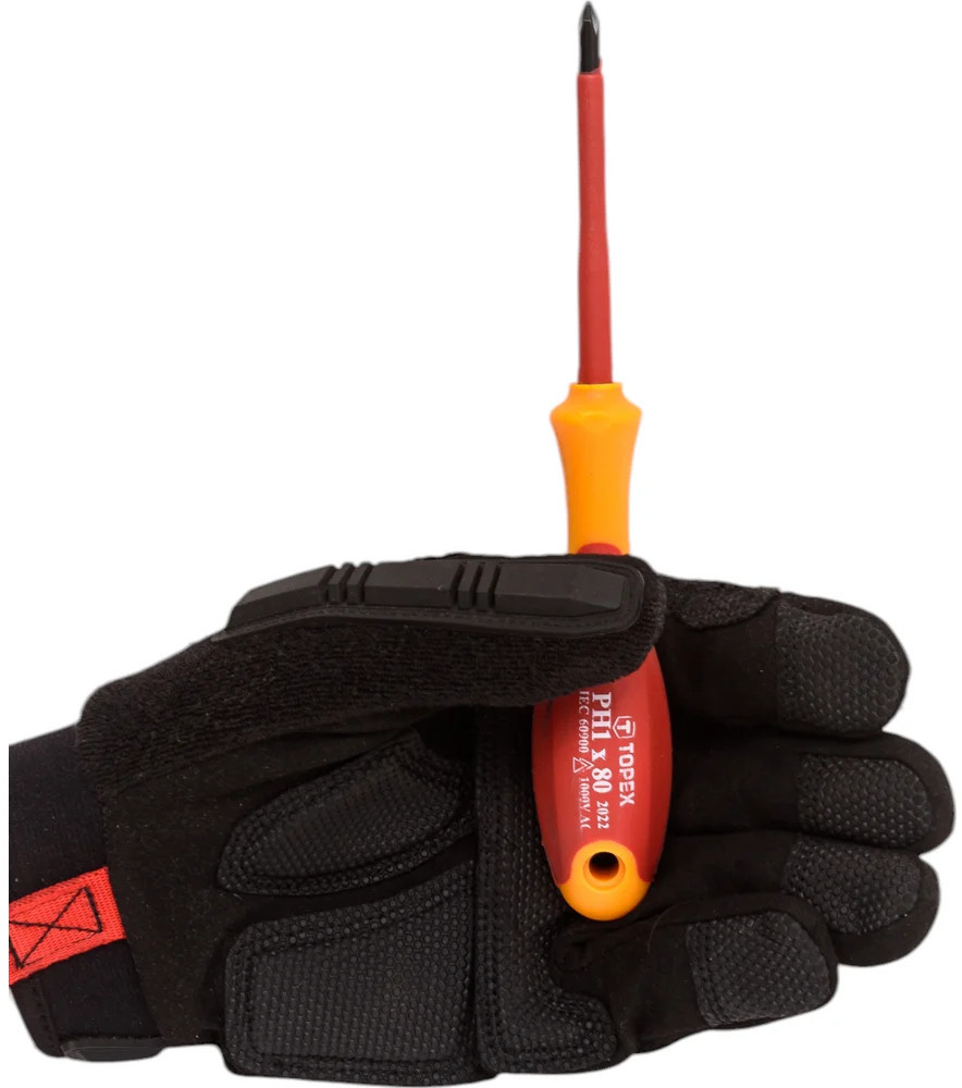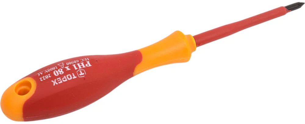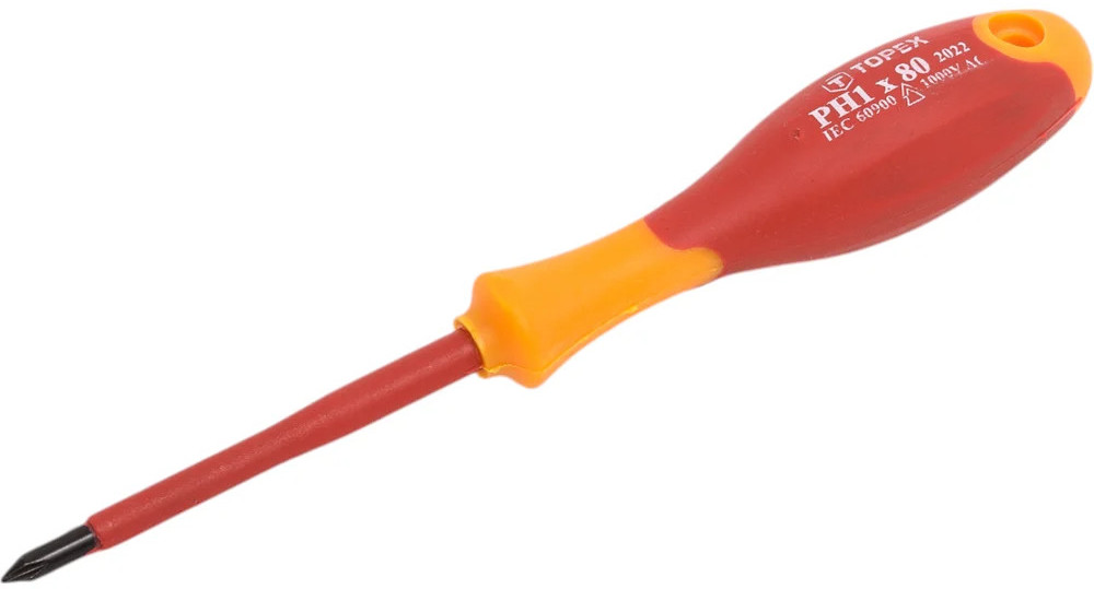Отвертка крестовая 1000 В TOPEX 39D476 предназначена для работы под напряжением до 1000 В. Изготовлена из высококачественной хромомолибденовой стали, изолированная. Эргономичная пластмассовая рукоятка, покрытая антискользящим материалом, обеспечивает комфорт и безопасность во время работы.