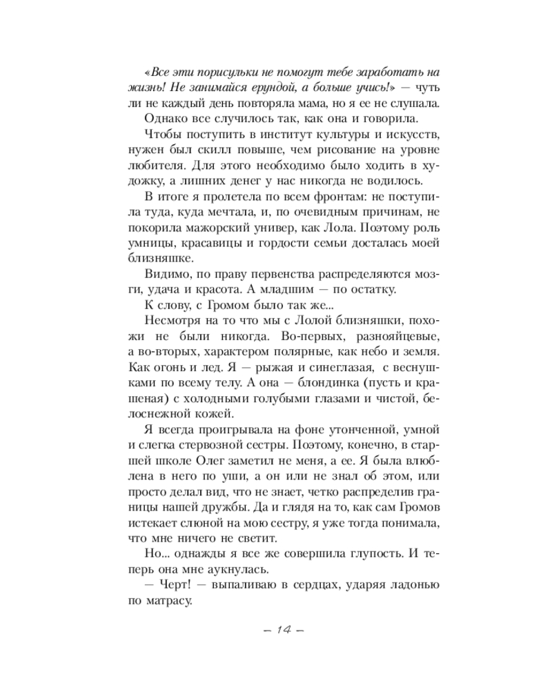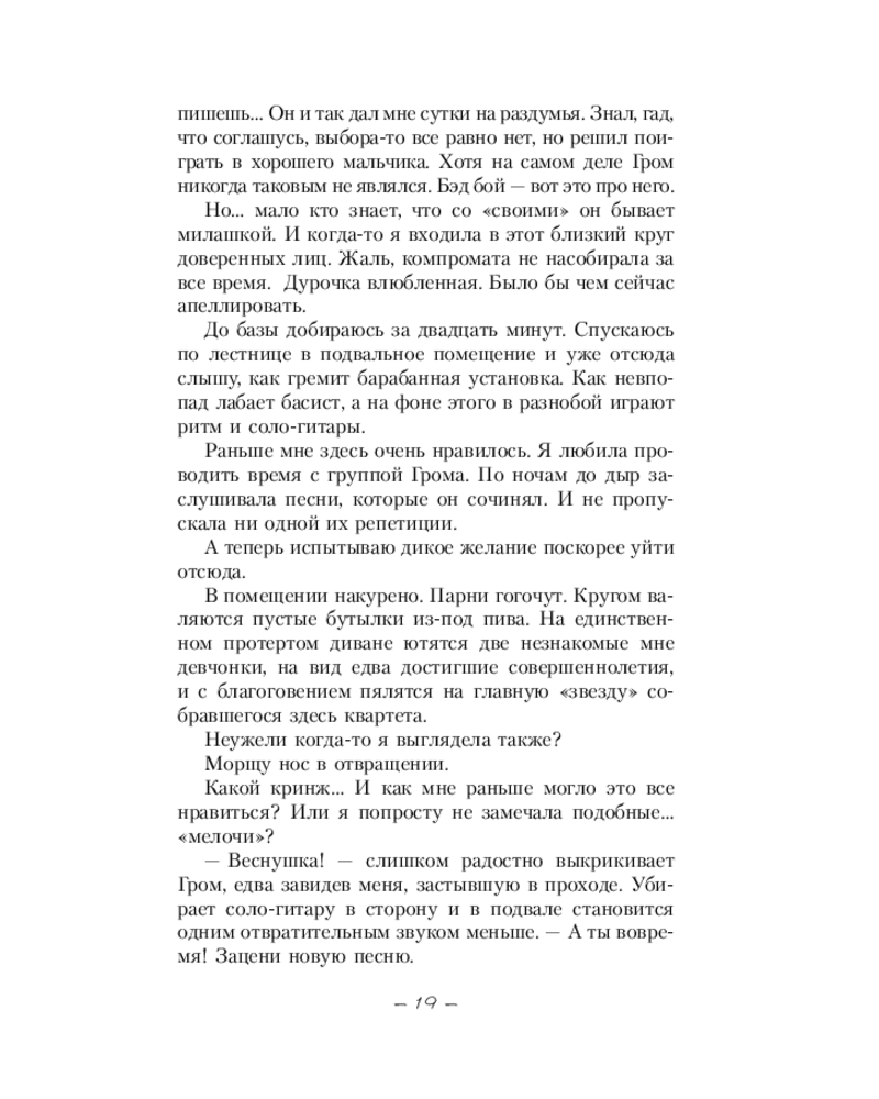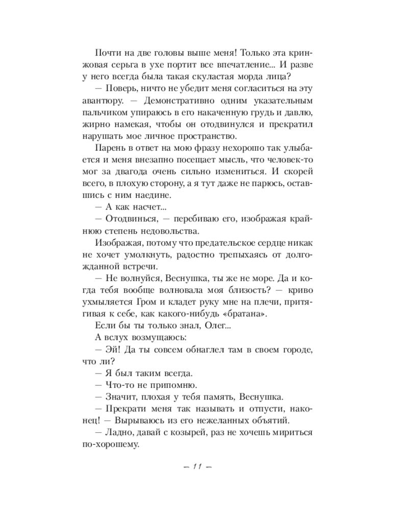 💳 Оплатить за товар можно при получении 🇰🇿 Есть бесплатная доставка по Казахстану от 1 дня 🎁 Копите бонусы с каждой покупки Серия: Любовь хулигана Когда-то Гром был моим другом детства. Теперь он – зазнавшийся мажор и мой самый худший кошмар. Кошмар, который решил вернуться в родные края с одной-единственной целью: заполучить мою сестру любой ценой. Грязным шантажом он вынуждает помочь ему вернуть Лолу. А потом целует меня на глазах у сестры, разрушив этим не только мою жизнь, но и то, что осталось от нашей дружбы. |